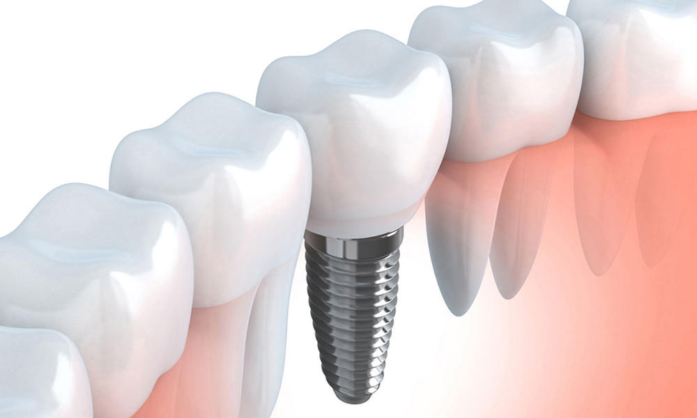 Zahnimplantate dienen als künstliche Zahnwurzeln und ersetzen fehlende Zähne. Sie bestehen aus Titan oder Keramik und verhindern den Abbau des Kieferknochens an den Stellen, wo sich keine eigene Zahnwurzel mehr befindet.